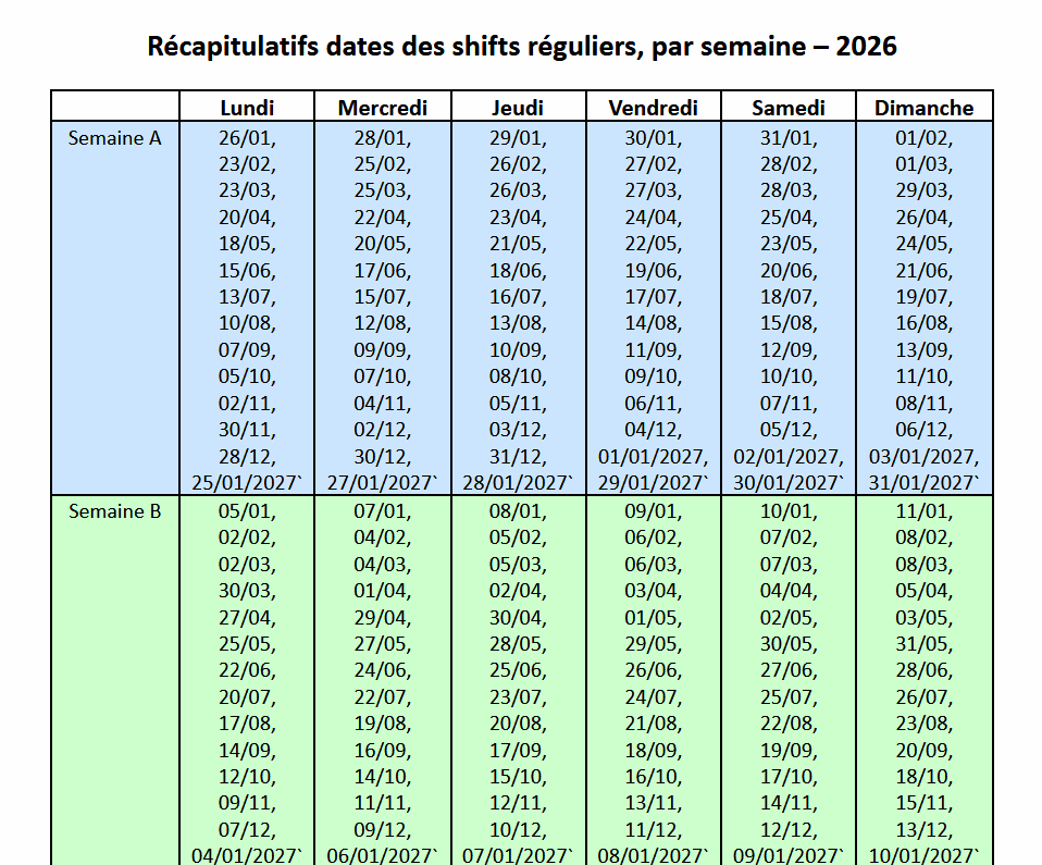Planning des semaines ABCD 2026